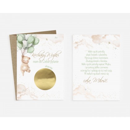 Do kartki dołączona jest koperta w kolorze różowym.