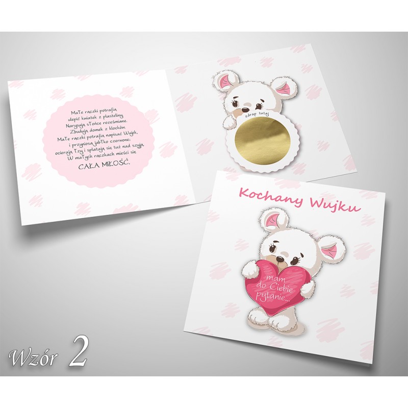 Do kartki dołączona jest koperta w kolorze różowym.