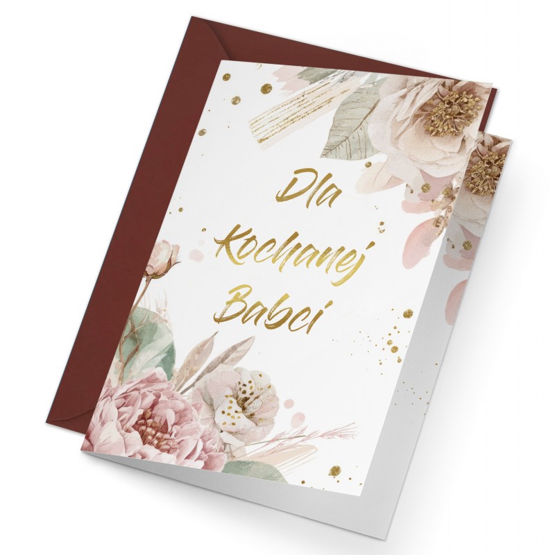Karnet-Kartka z okazji dnia Babci. Karta zestawie z kopertą w kolorze burgundu.