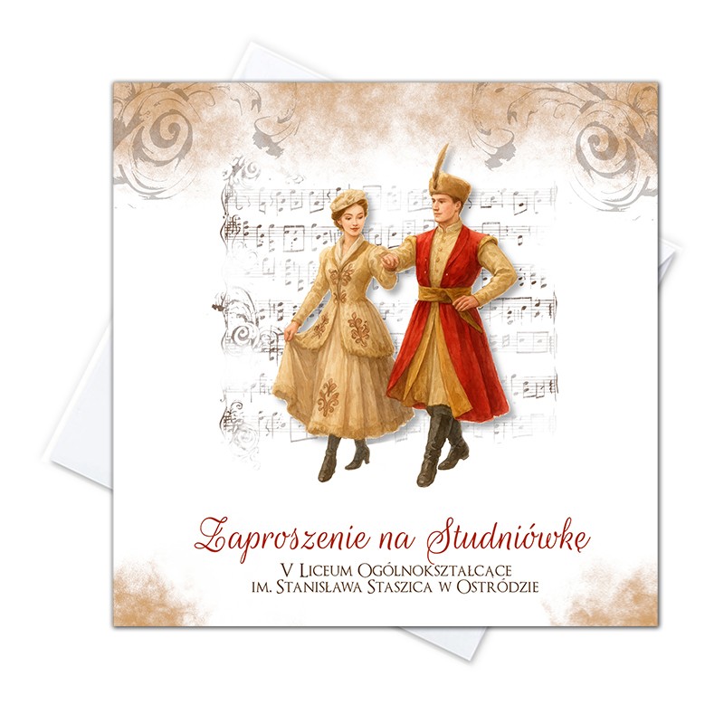 ✔️ tekst klasy/szkoły i patrona oraz miejscowości w środku zaproszenia,
