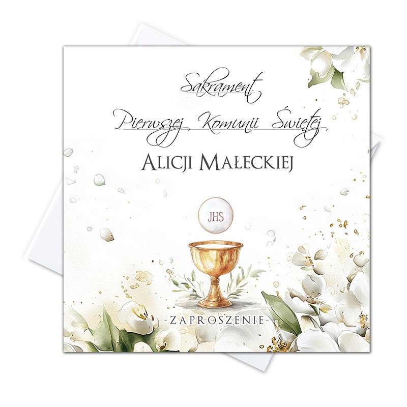 Zaproszenie personalizowane w zestawie z kopertą Biała 100 gram.